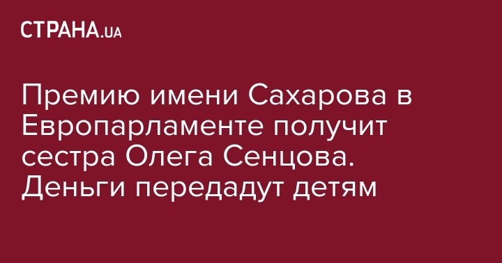 Премию имени Сахарова в Европарламенте получит сестра Олега Сенцова. Деньги передадут детям