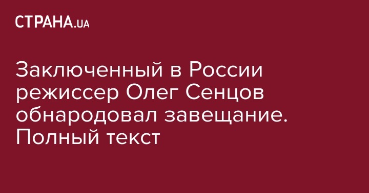 Заключенный в России режиссер Олег Сенцов обнародовал завещание. Полный текст