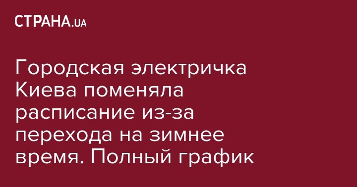 Из-за перехода Украины на зимнее время в ночь на воскресенье, 28 октября, киевская городская электричка меняет расписание движения поездов. Об этом говорится в сообщении пресс-службы коммунального предприятия "Киевпастранс".