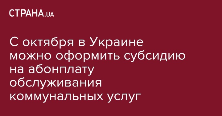 С октября в Украине можно оформить субсидию на абонплату обслуживания коммунальных услуг