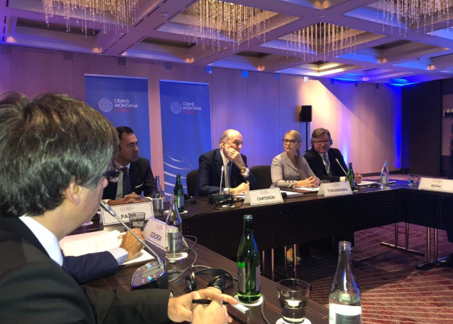 Встреча произошла на 20-м ежегодном Форуме по вопросам внутренней и глобальной безопасности, который проводит международная организация Crans Montana Forum в городе Женева, Швейцария.