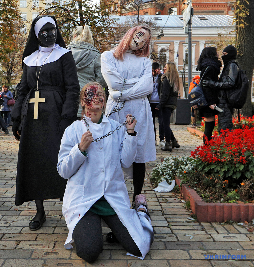 По Киеву в честь Хэллоуина прошли парадом зомби, ведьмы и мертвецы. Фото