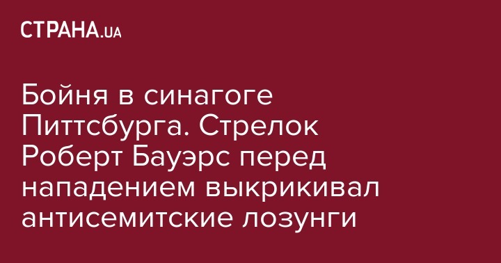Бойня в синагоге Питтсбурга. Стрелок Роберт Бауэрс перед нападением выкрикивал антисемитские лозунги