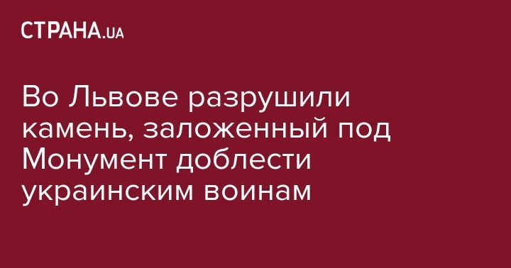 В ночь на 28 октября, во Львове, неизвестные уничтожили камень, заложенный под будущий "Монумент доблести украинских воинов". Об этом в Facebook сообщил глава Львовского отделения "Национального корпуса" Святослав Серый.