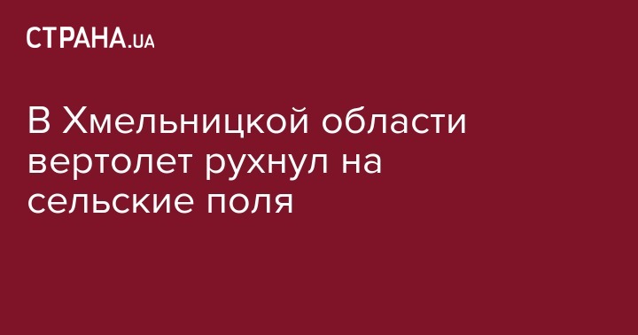 В Хмельницкой области на поле возле села Ивановка Новоушицкого района упал вертолет. Инцидент произошел сегодня, 7 июня, в 16.15. Об этом сообщает пресс-служба Национальной полиции.