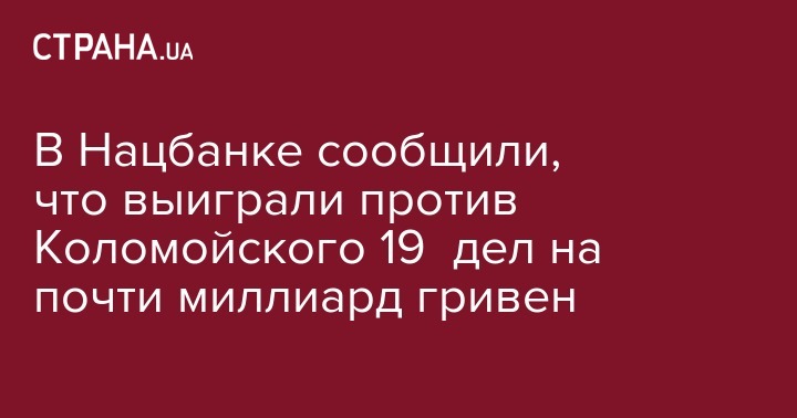 Украинские хозсуды за последние два месяца приняли 19 решений в пользу Национального банка Украины в спорах со структурами, связанными с бывшим акционером "ПриватБанка" Игорем Коломойским, на общую сумму 947 млн гривен. Об этом написал начальник управления претензионно-исковой работы юридического департамента НБУ Виктор Григорчук в своей колонке на сайте интернет-издания "Экономическая правда".