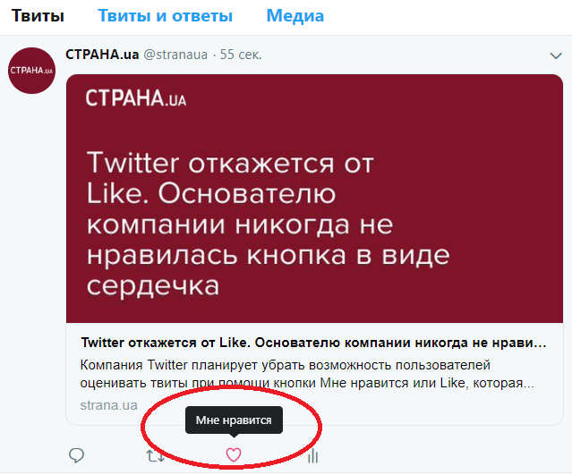 Кнопку "Мне нравится" из Twitter уберут Фото: twitter.com/stranaua