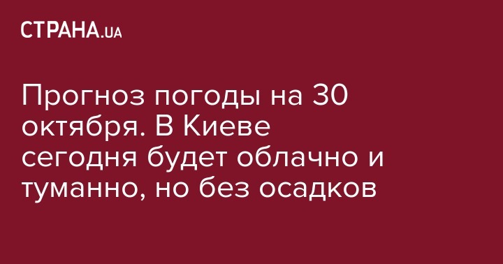 Прогноз погоды на 30 октября. В Киеве сегодня будет облачно и туманно, но без осадков