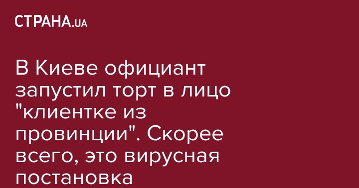 В Киеве официант запустил торт в лицо "клиентке из провинции". Скорее всего, это вирусная постановка