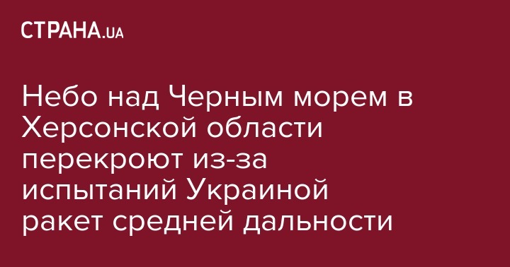 На текущей неделе воздушное пространство над Черным морем в районе Херсонской области закроют на несколько дней. В районе пройдут украинские испытания ракет средней дальности. Украина объявила опасной зоной для полетов гражданской авиации над Черным морем в районе западного побережья Крыма.