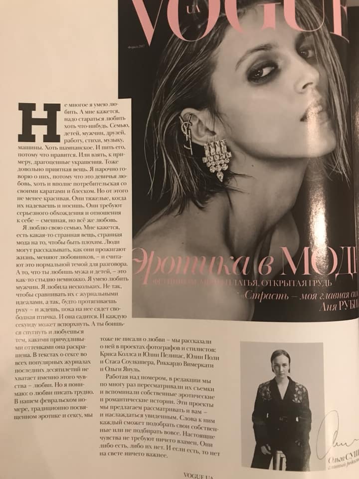 "И немного про Vogue Ukraine.Надеюсь, появится третейский судья и всех рассудит. С Ольгой Сушко мы знакомы благодаря профессиональным вопросам, и точно знаю, что делает редакция большое дело. Да, оступилась она, это и признает. Неправа, но и это признает.