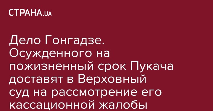 Бывшего руководителя Департамента внешнего наблюдения МВД Алексея Пукача планируют доставить в Верховный Суд, где будет рассматриваться его кассационная жалоба на решение судов двух предыдущих инстанций об осуждении его к пожизненному лишению свободы за убийство журналиста Георгия Гонгадзе. Об этом сообщили УНН в пресс-центре Верховного Суда.