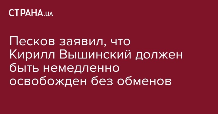 "Мы считаем, что Вышинский должен быть незамедлительно освобожден, это не тема для каких-либо обменов", - сказал Песков.