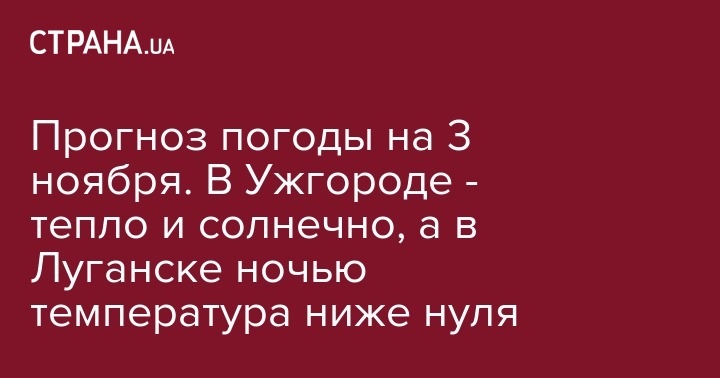 Так, в большинстве регионов температура будет сохраняться на уровне +10...+16 градусов. При этом в восточных областях будет более прохладно, а в Луганском регионе ночью обещают небольшой минус: -1...-3 градуса. Однако днем на востоке страны будет сохраняться температура +9...+11 градусов. Теплее всего будет в Ужгороде. Синоптики прогнозируют в этом регионе солнечную погоду и до +21 градусов. В соседних областях будет прохладнее, но незначительно: +15...+17 градусов.