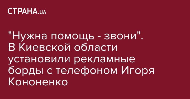 "Нужна помощь - звони". В Киевской области установили рекламные борды с телефоном Игоря Кононенко