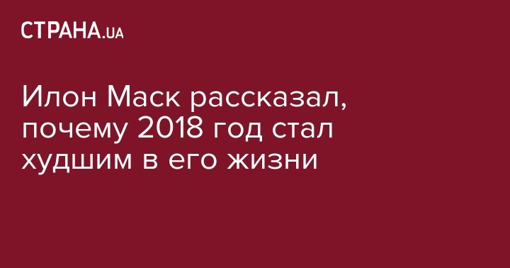 Илон Маск рассказал, почему 2018 год стал худшим в его жизни