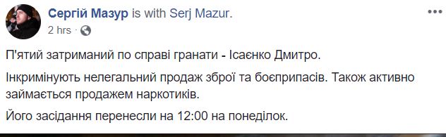 Андрей Верченко - вероятный исполнитель - получил два месяца в СИЗО, а Руслан Бальянов, которого подозревают в продаже гранаты - то же самое, но с правом выйти под залог в 145 тысяч гривень.