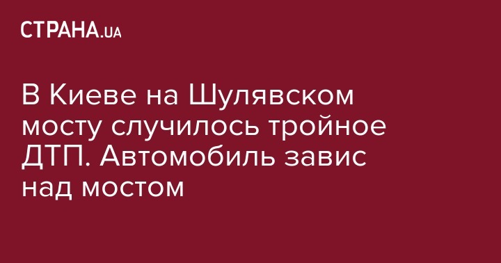 В Киеве на Шулявском мосту случилось тройное ДТП. Автомобиль завис над мостом