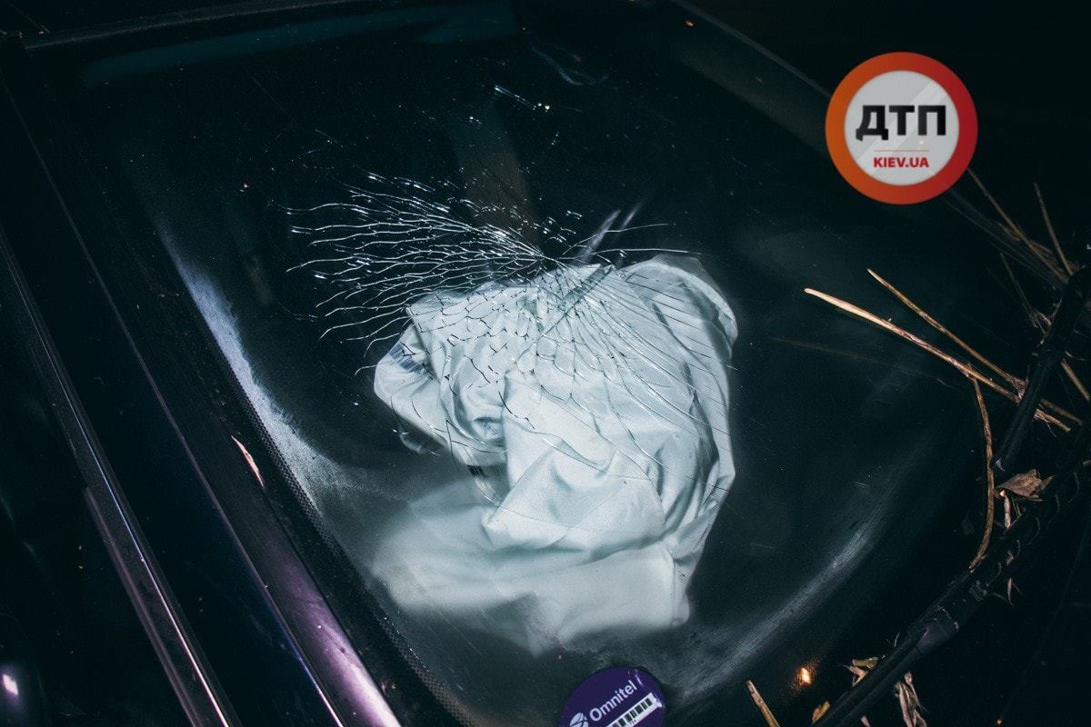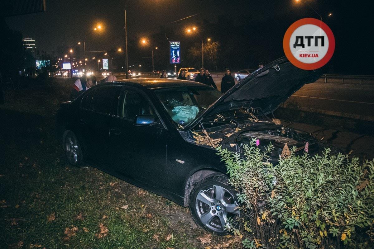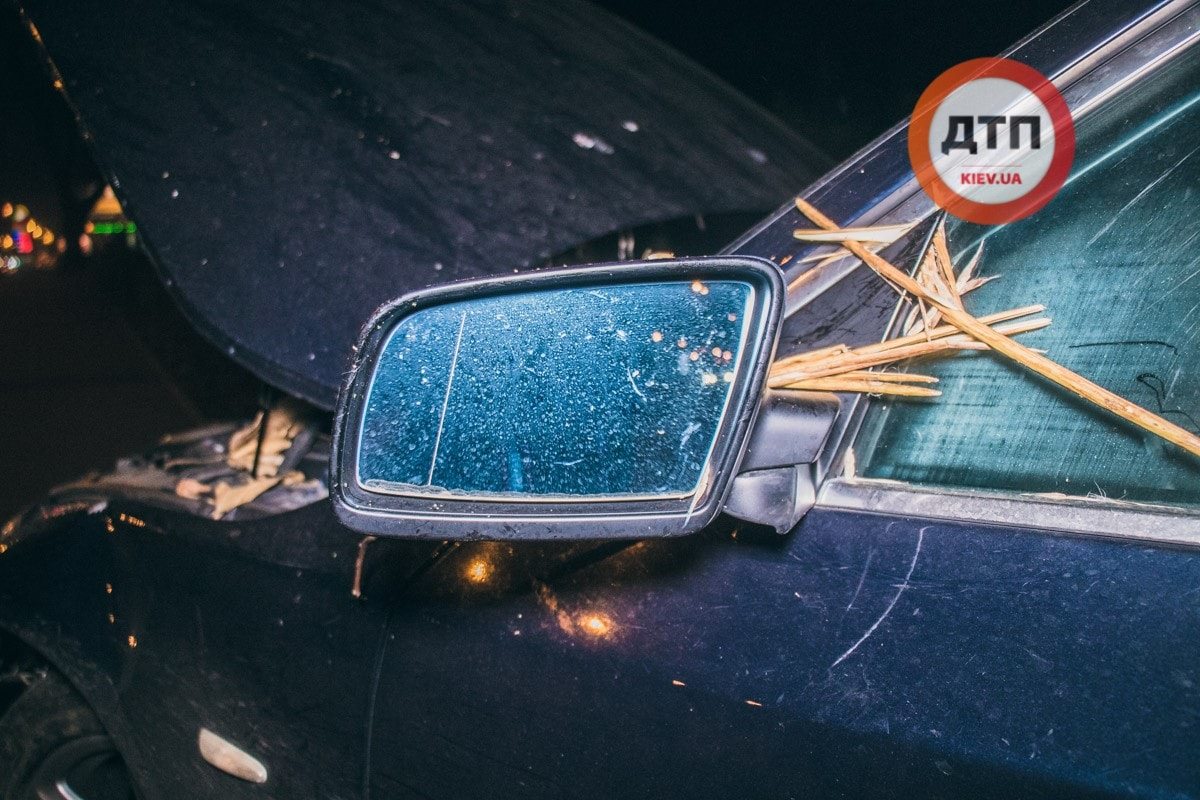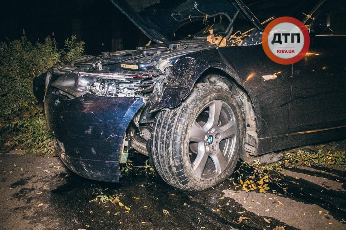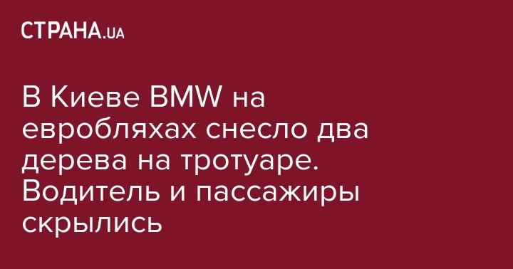 В Киеве BMW на евробляхах снесло два дерева на тротуаре. Водитель и пассажиры скрылись