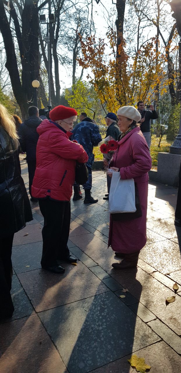 Возле памятника собрались несколько десятков людей, многие пришли с цветами. Мероприятие не носило официальный характер и его сложно назвать массовым. Собравшиеся общались между собой, вспоминая рассказы тех, кто участвовал в освобождении Киева.