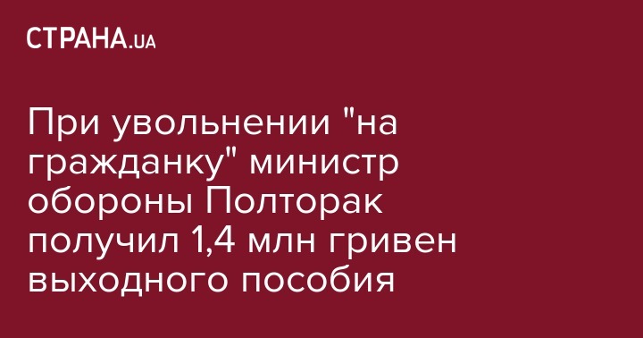 При увольнении "на гражданку" министр обороны Полторак получил 1,4 млн гривен выходного пособия