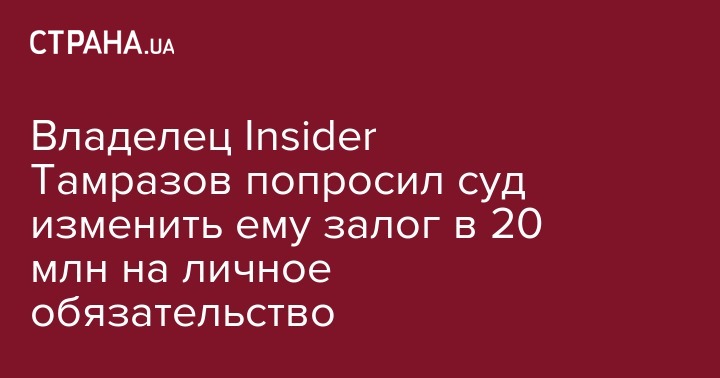 Владелец издания Insider, бывший заместитель председателя правления "Укргаздобычи" Алексей Тамразов обратился с ходатайством в Печерский районный суд Киева, в котором просит изменить ему меру пресечения с залога 20 млн гривен на личное обязательство. Об этом сообщил адвокат Тамразова Николай Ореховский, пишут Украинские новости.