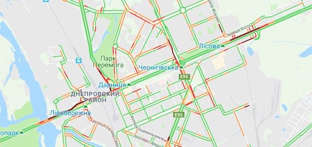 Так, с 09:00 утра наиболее загруженными из-за дорожных работ оказались районы станций метро "Арсенальная", "Левобережная", "Голосеевская" и "Дружбы народов". Кроме того, пробками по тем же причинам скованы Окружная дорога, проспект Леся Курбаса и улица Ромена Роллана.