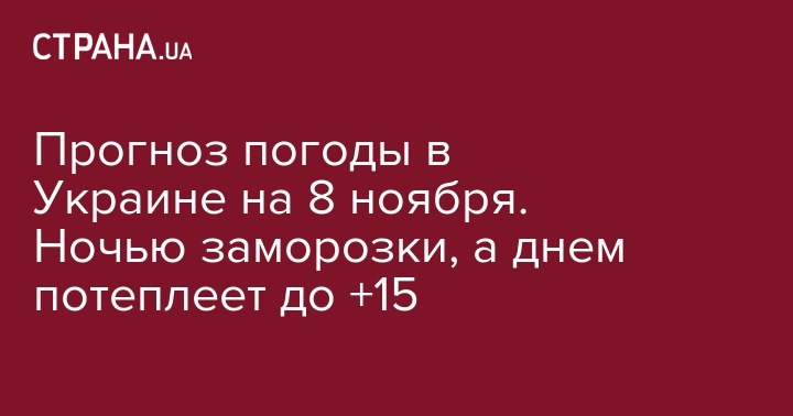 В четверг, 8 ноября, погода в Украине существенно не изменится, ночью ожидаются заморозки, а днем солнечно и без осадков. Утром и ночью в большинстве областей будут образовываться туманы, сообщает Укргидрометцентр.