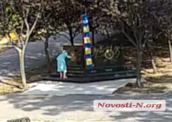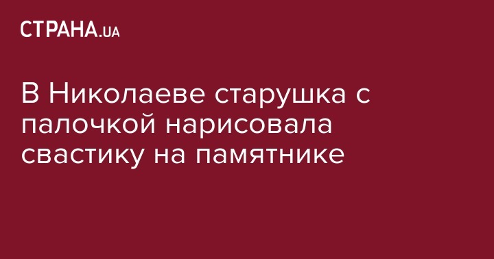 В Николаеве старушка с палочкой нарисовала свастику на памятнике