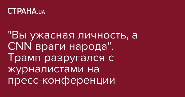 "Честно говоря, дайте мне управлять страной. Вы заведуете CNN, и если бы делали это хорошо, рейтинги были бы лучше. Сядьте. Когда вы передаете фейковые новости, а CNN часто так делает, вы действуете как враги народа. CNN должен стыдиться того, что вы на них работаете. Вы грубая, ужасная личность, вы не должны работать на CNN", - заявил Трамп.