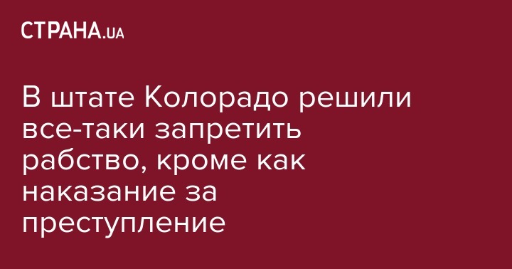 В штате Колорадо решили все-таки запретить рабство, кроме как наказание за преступление