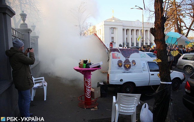 Ситуация перед парламентом напряженная. Здание Верховной Рады охраняют несколько сотен бойцов Национальной гвардии и спецназовцев. Здание парламента окружили до тысячи митингующих. Движение по улице Грушевского возле Рады перекрыто автомобилями на еврономерах.