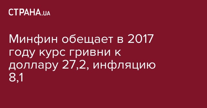 Минфин обещает в 2017 году курс гривни к доллару 27,2, инфляцию 8,1%