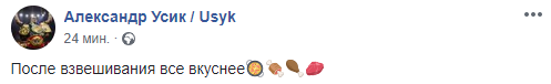 После этого на странице украинца появилось его фото с женой, на котором он с аппетитом обедает. "После взвешивания все вкуснее", - гласит подпись под фото.
