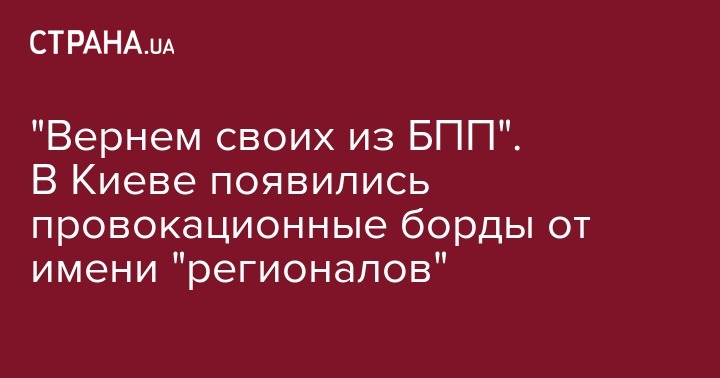 В самом центре Киева появились рекламные борды с троллингом БПП. Об этом пишут пользователи в Facebook. Киевляне сообщают, что на Малой Житомирской размещена реклама якобы от Партии регионов со слоганом: "Вернем своих из БПП!"