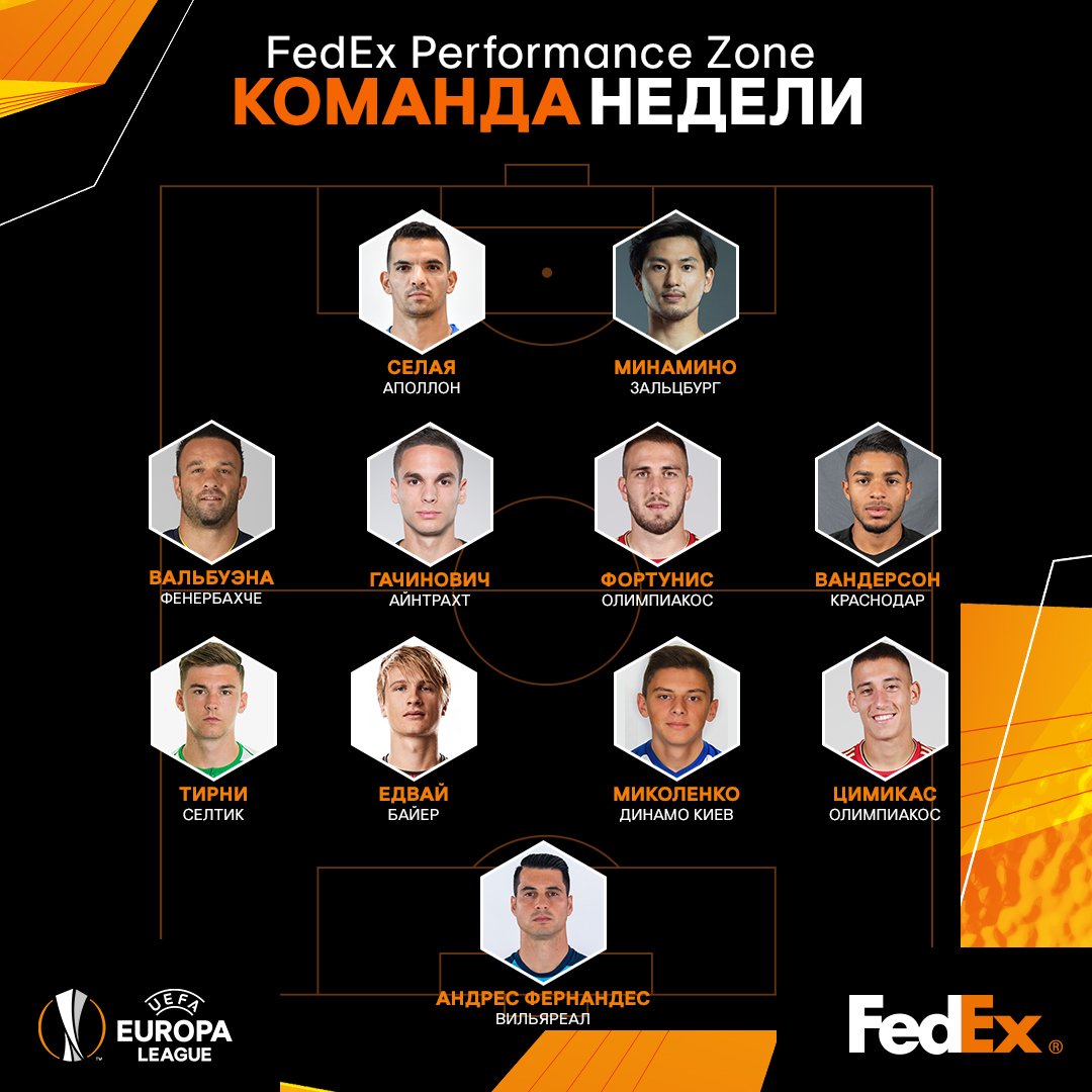 Левый защитник киевского Динамо Виталий Миколенко вошел в символическую сборную лучших футболистов тура в Лиге Европы по версии УЕФА. Также он оказался в "команде недели" авторитетного сайта WhoScored.