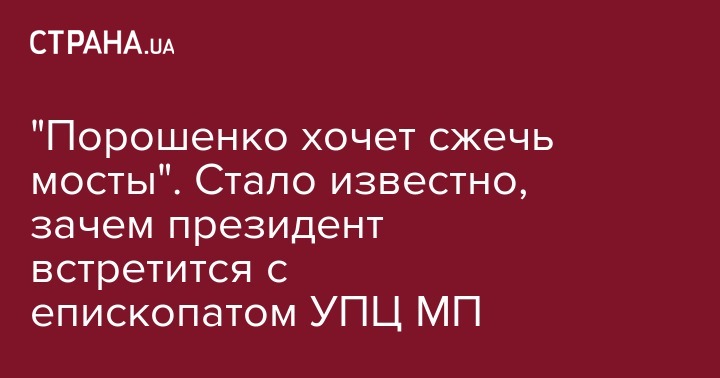 Планируемая на 13 ноября встреча епископов Украинской православной церкви (МП) с президентом Украины является инициативой непосредственно Петра Порошенко, который хочет добиться от них выполнения своих целей. Об этом сообщил "Стране" источник в УПЦ.