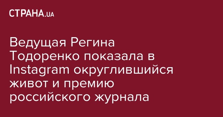 Ведущая Регина Тодоренко показала в Instagram округлившийся живот и премию российского журнала