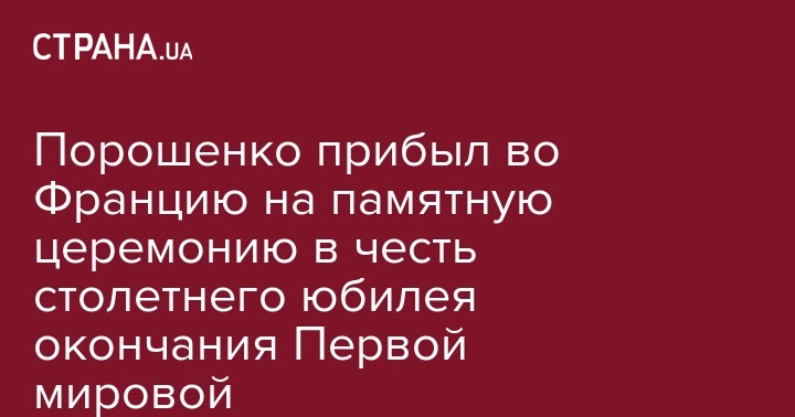 В субботу, 10 ноября, президент Украины Петр Порошенко прибыл с рабочим визитом во Францию. Во Франции глава государства примет участие в памятных и торжественных мероприятиях по случаю 100-летия завершения Первой мировой войны. Об этом сообщает "Укринформ".