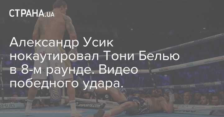 Александр Усик нокаутировал Тони Белью в 8-м раунде. Видео победного удара.