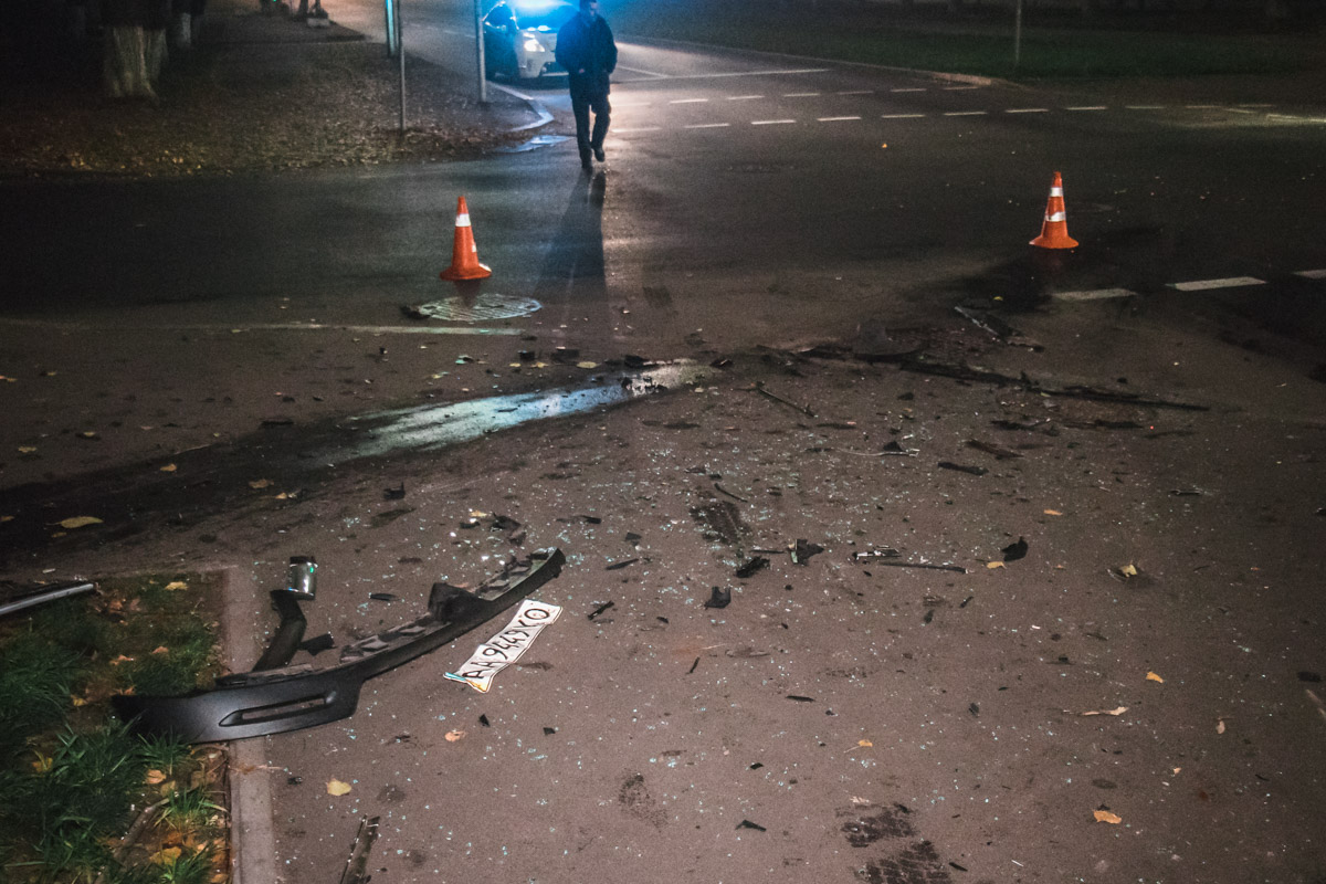 По словам водителя Citroеn, он с женой на пассажирском сидении, двигался по бульвару Вернадского со стороны проспекта Победы. На перекрестке с улицей Депутатской он столкнулся с автомобилем Renault. Мужчина сообщил, что он проезжал на зеленый сигнал светофора. В свою очередь у Renault в это время горел красный сигнал и автомобиль вылетел из-за другой машины, стоящей в это время на перекрестке. Водитель Citroеn попытался затормозить и уйти от столкновения, однако врезался в правый бок Renault. От удара машины вылетели на пешеходную зону.