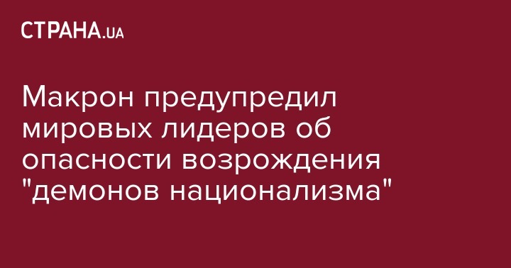 Президент Франции Эммануэль Макрон предупредил об опасности национализма в своей речи, произнесенной во время церемонии по случаю завершения Первой мировой войны. Он заявил,  что "древние демоны", которые вызвали Первую мировую войну и привели к миллионам смертей, снова становятся сильнее, пишет Associated Press.