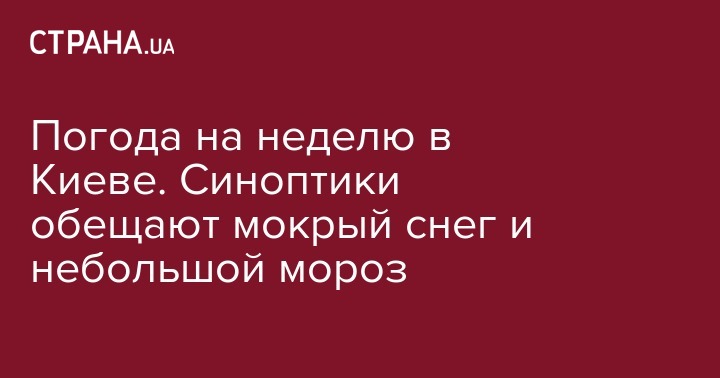 По данным Укргидрометцентра, в середине недели дневная температура опустится до -1 (во вторник и среду). В среду и четверг - мокрый снег. В пятницу осадки прекратятся, днем немного потеплеет до +2...+4. Ночью в Киеве -1...+4.