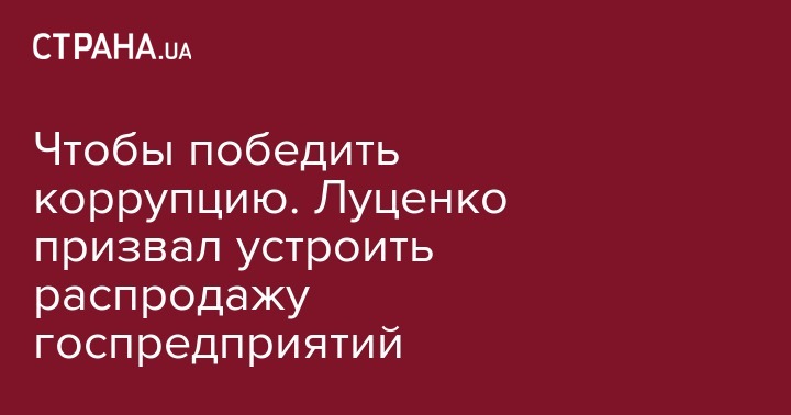 "Государственный сектор должен быть сокращен на открытых аукционах приватизации, принести деньги в бюджет - и обеспечить эффективного собственника. Другого пути преодоления массовой коррупции, которая держит всю политическую, партийную систему - я не вижу", - сказал Луценко