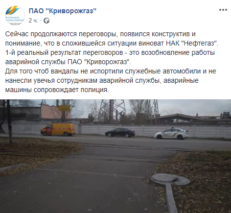 "Сейчас продолжаются переговоры, появился конструктив и понимание, что в сложившейся ситуации виноват НАК "Нефтегаз". Первый реальный результат переговоров - это возобновление работы аварийной службы ПАО "Криворожгаз", - говорится в сообщении.