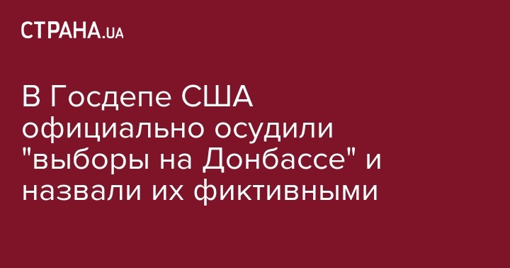 В Государственном департаменте США осуждают фиктивные "выборы" на Донбассе и заявляют о продолжении санкций против России, пока Москва не будет полностью соблюдать Минские соглашения и не вернет Украине контроль над Крымом.