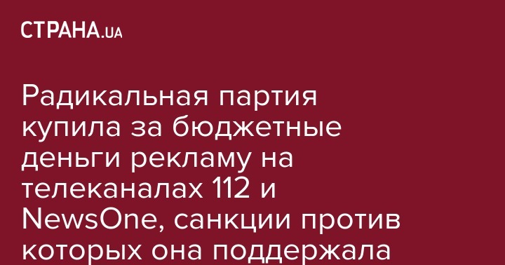 "С одной стороны, Радикальная партия поддерживает санкции в отношении 112 канала и NewsOne, обвиняя их в российской пропаганде. С другой стороны, за месяц до голосования в Раде перечисляет этим каналам значительные суммы средств за размещение рекламных роликов, что выглядит, мягко говоря, нелогично. При этом речь идет о расходовании именно государственных средств, полученных партией из бюджета", - отметил председатель КИУ Алексей Кошель.
