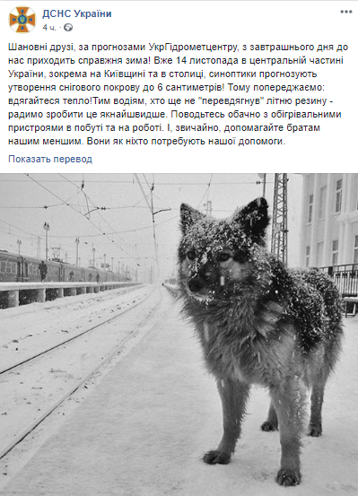 В среду, 14 ноября, часть Украины накроет снегом. Об этом на своей странице в соцсети сообщает ГосЧС Украины. Спасатели предупреждают о том, что ожидают выпадение 6 см снега.