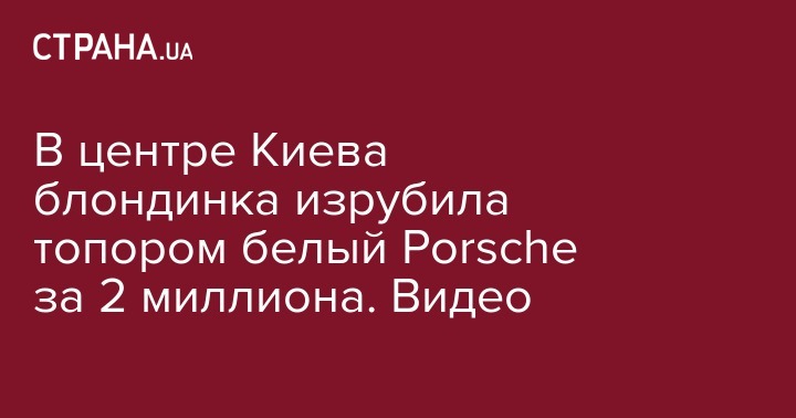 В соцсетях опубликовано видео с длинноволосой экстравагантной блондинкой, которая с топором в руках в центре Киевап крушит припаркованный белый автомобиль Porsche (на официальном сайте компании указана цена такого авто - более 2 млн грн).