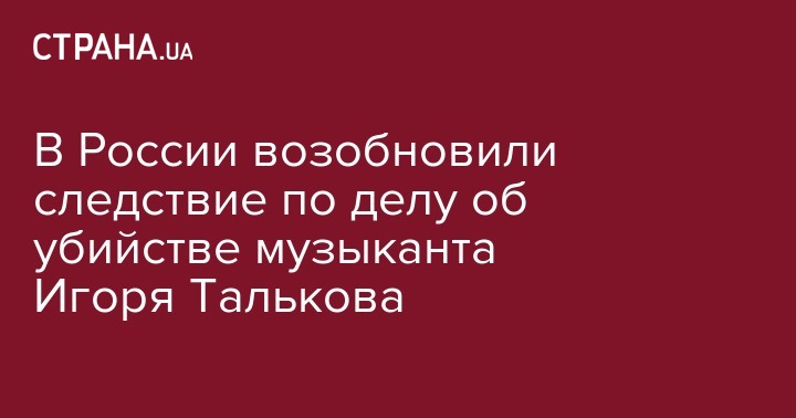 В России управление Следственного комитета РФ по Санкт-Петербургу возобновило расследование уголовного дела об убийстве музыканта и автора песен Игоря Талькова, пишет Медуза